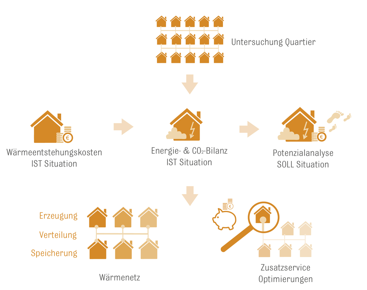 Bei der Realisierung Ihrer lokalen Wärmeversorgung verknüpfen wir wichtige Parameter für ein bestmögliches Ergebnis: