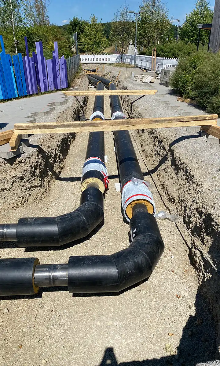 Bei allen Planungen wurde der laufende Betrieb eines vorhandenen Wärmenetzes im Gewerbepark Ost berücksichtigt.