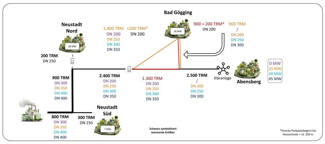 Das Gebiet, das später durch ein Wärmenetz versorgt wird, beschränkt sich im Wesentlichen auf den Kernort Neustadt an der Donau und den Kernort Bad Gögging. In diesem Bereich befinden sich etwa 2.200 Gebäude, darunter mehrere Kurbetriebe und eine Therme.