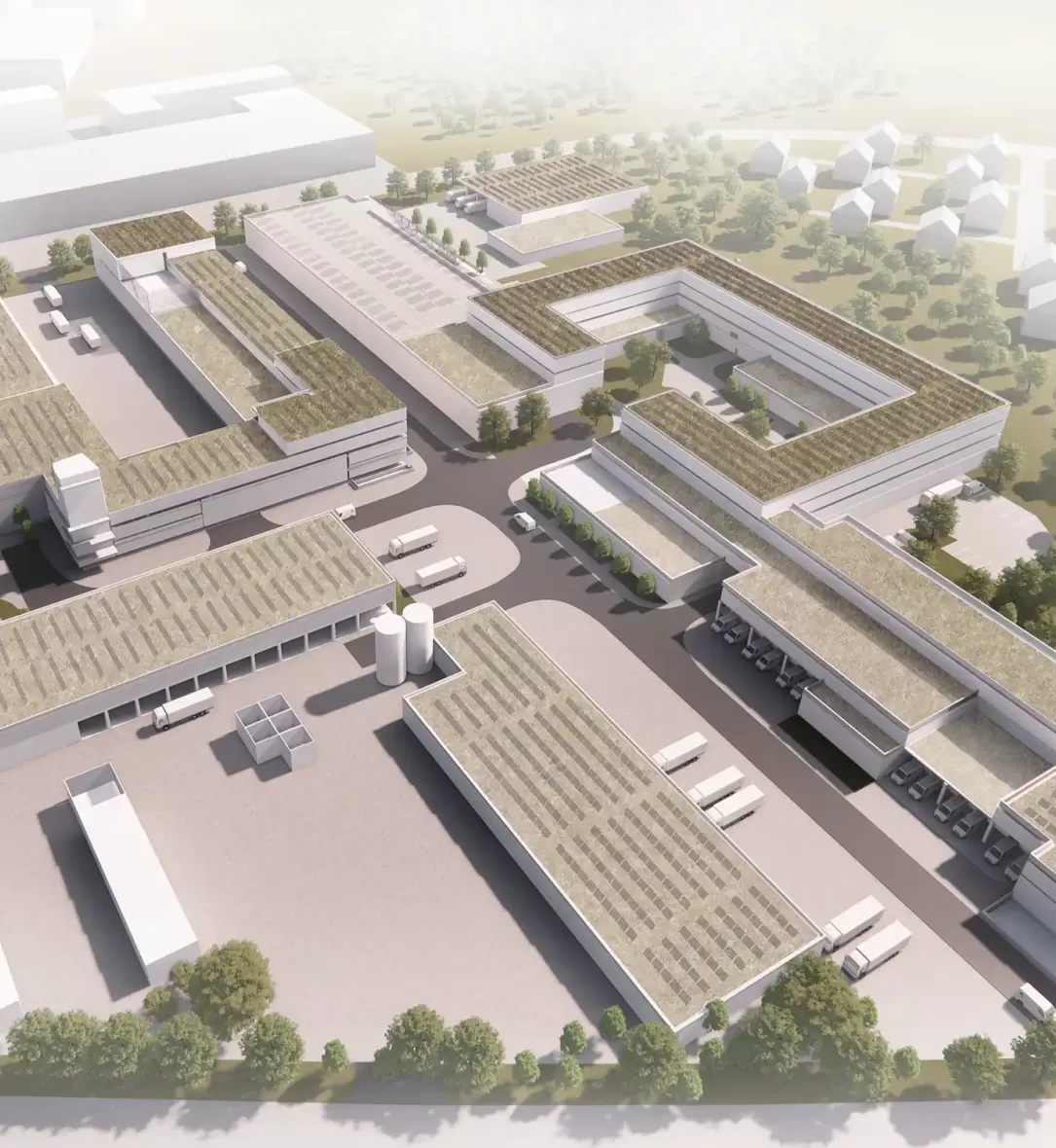Als primäre Ressource bei der Wärmeversorgung soll zukünftig industrielle Abwärme der Firma Renolit SE genutzt werden. Zur Erzeugung der Klimakälte für die Gebäudeteile werdenreversible Luft-Wasser-Wärmepumpen ausgeführt. Ein Erdregister zur Nutzung oberflächennaher Geothermie ist dabei optional.